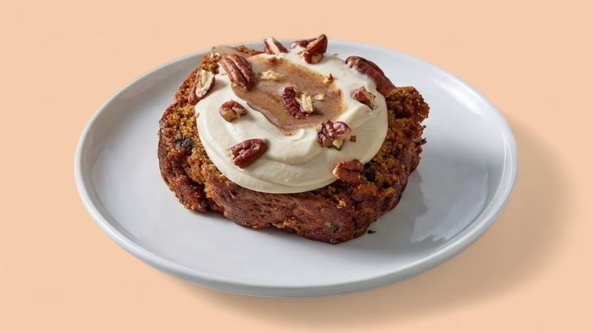 פרוסת עוגת גזר, קרם גבינה, פרלינה פקאן, פקאנים קלויים