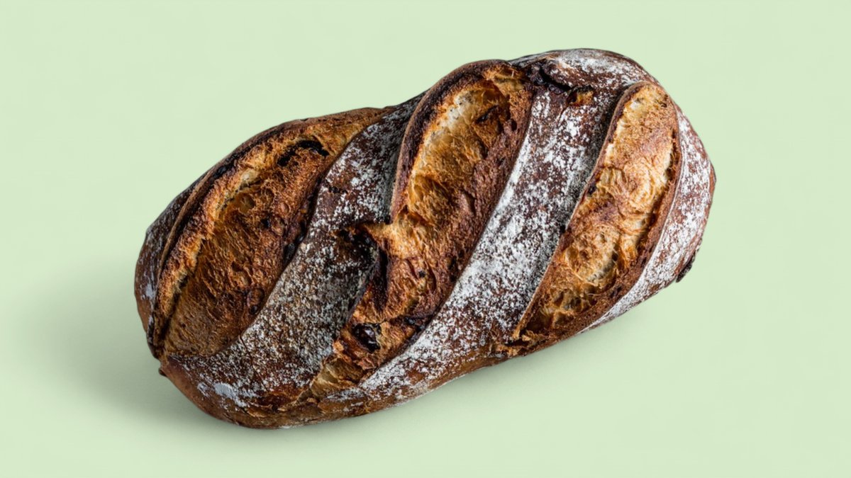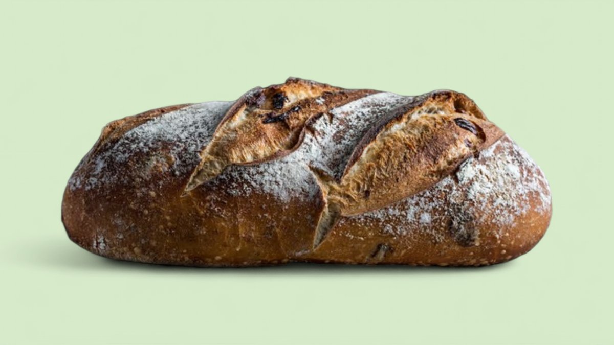 לחם מחמצת מקמח לבן וזיתי קלמטה ללא סוכר וטבעוני