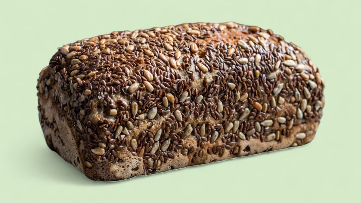 לחם מקמח שיפון מלא 100% עם גרעיני חמנייה וזרעי פישתן ללא סוכר