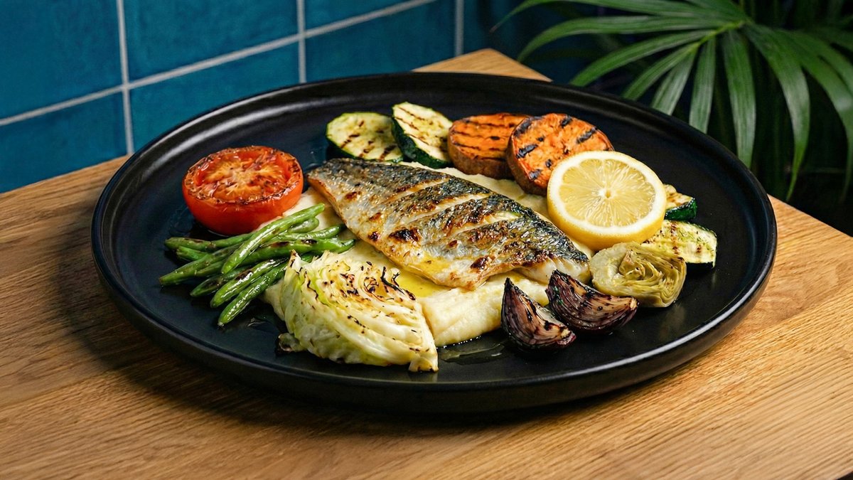פילה דניס איכותי (200)שפוגש פירה קרמי וחמאתי מוגש עם ירקות צלויים .