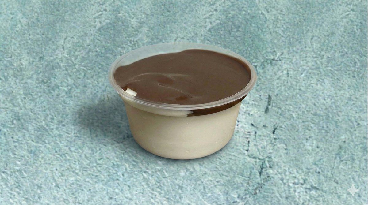 שייק קרמי של בננה בשילוב סירופ קרמל עשיר, גלידה וניל, חלב וקרח עם טפיוקה ובאבלס קרמל