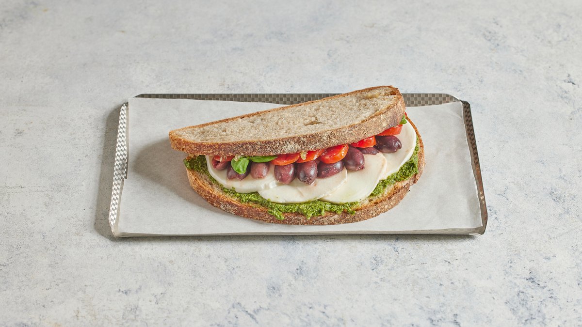 פסטו ביתי, גבינת מוצרלה, עגבניה, מיקרו בזיל