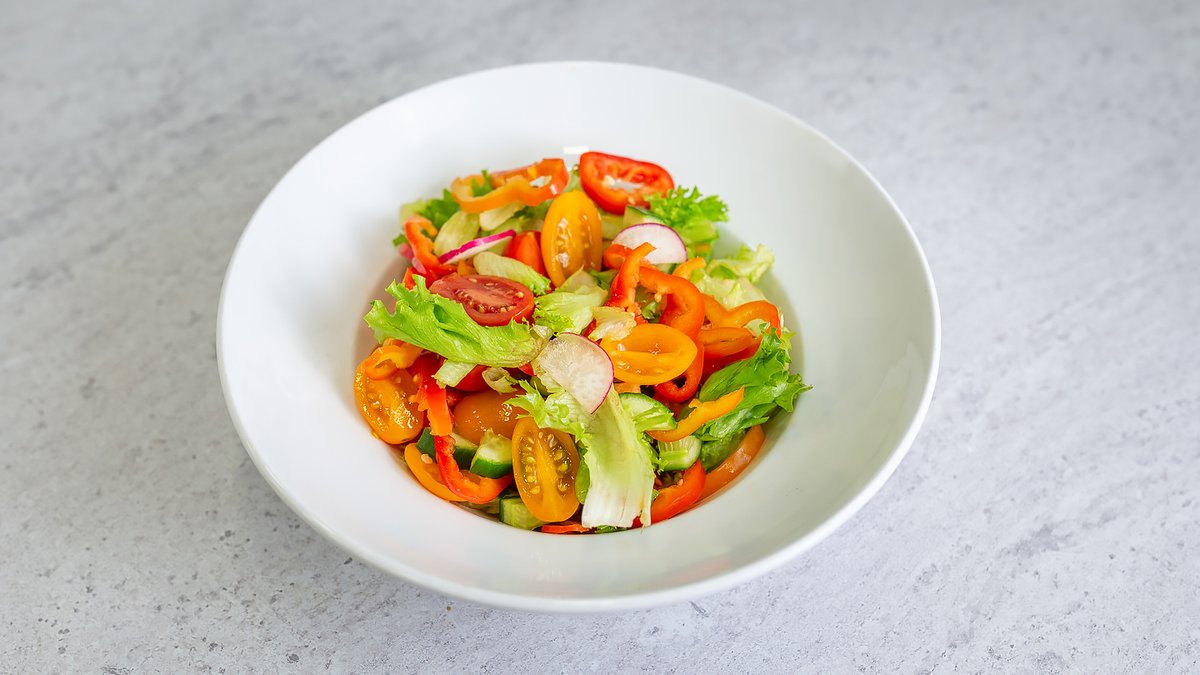 חסה לאליק ,עלים, בצל סגול, שרי צהוב ואדום, מלפפון, פלפלים וצנונית | ללא גלוטן | טבעוני