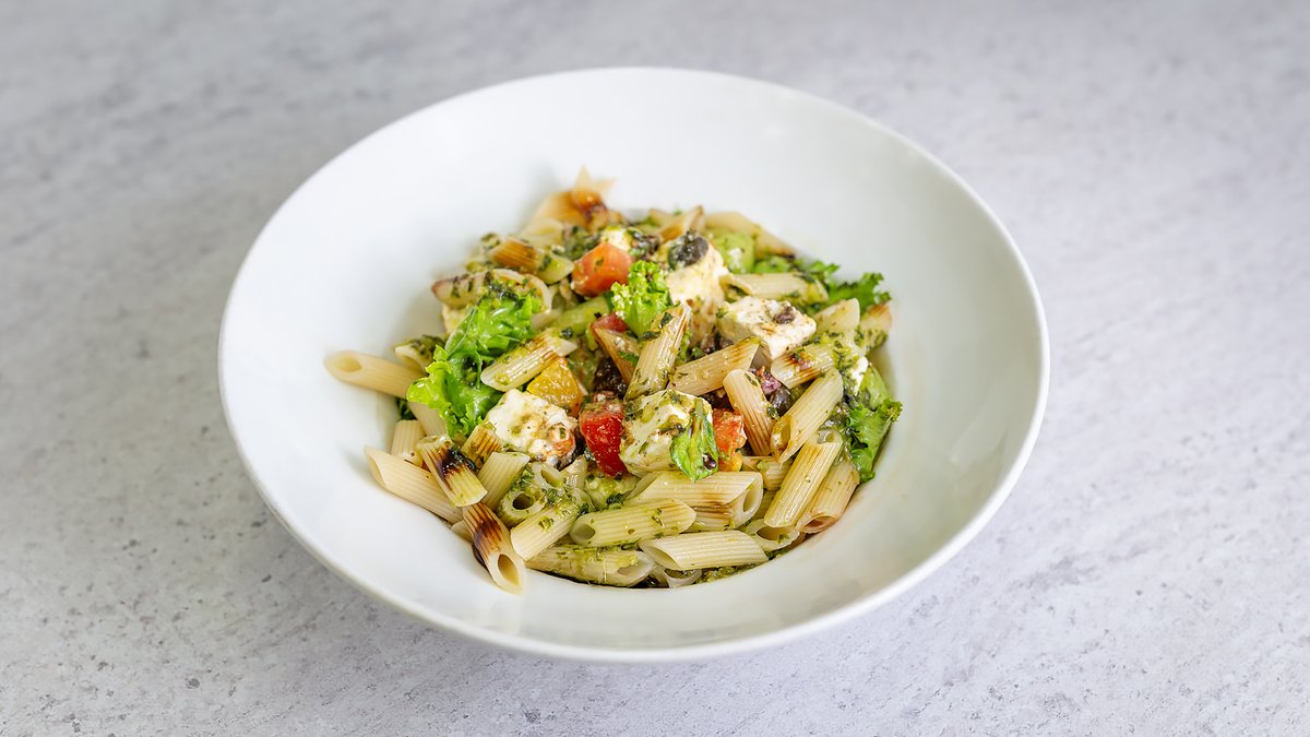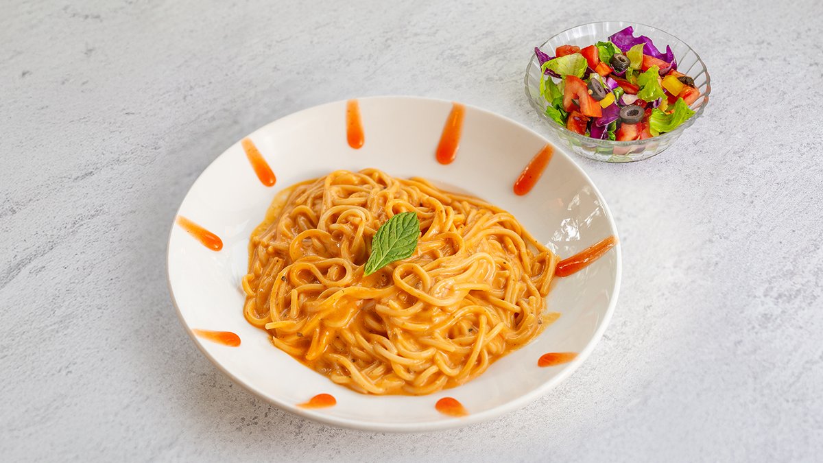 פסטה ורוטב לבחירה מוגש עם ירקות חתוכים