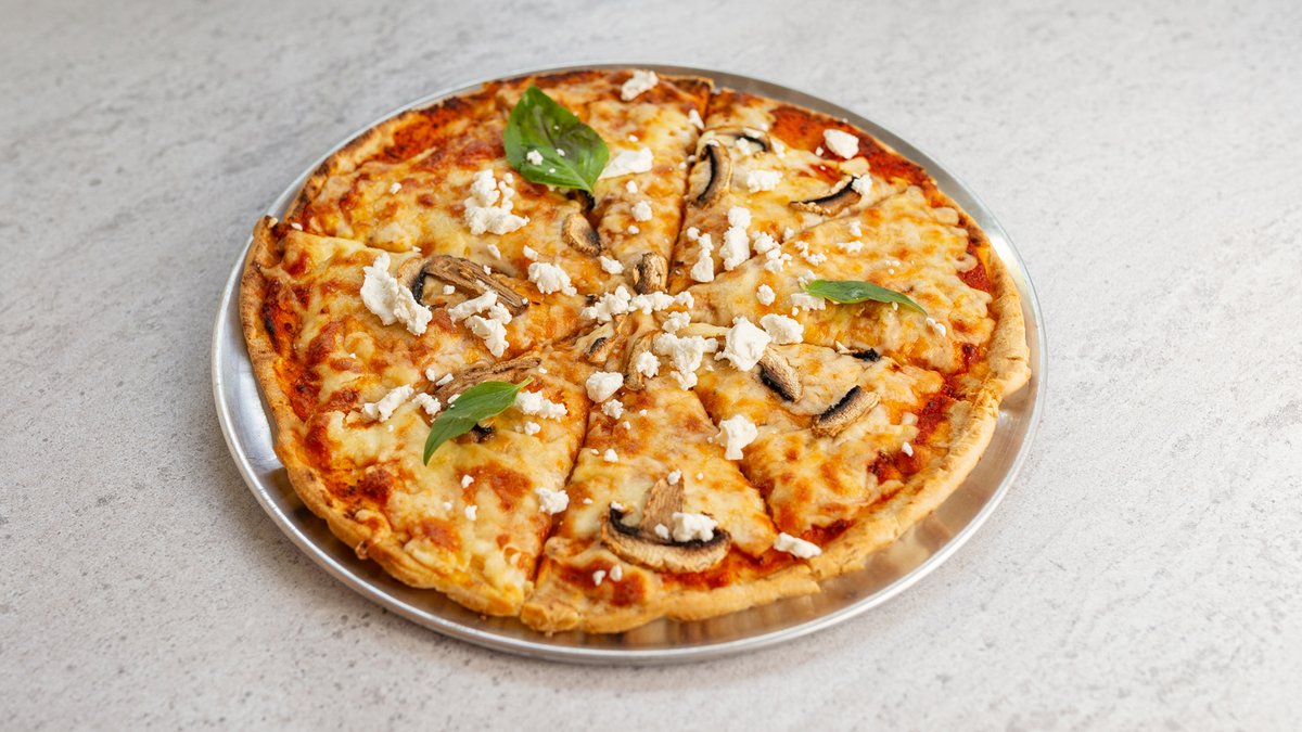 רוטב פיצה, פטריות, תירס, זיתים שחורים וגאודה