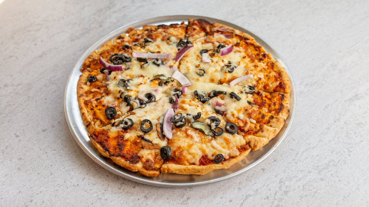רוטב פיצה, איולי שום, בצל סגול, זיתים שחורים , ביצה קשה זעתר וגאודה