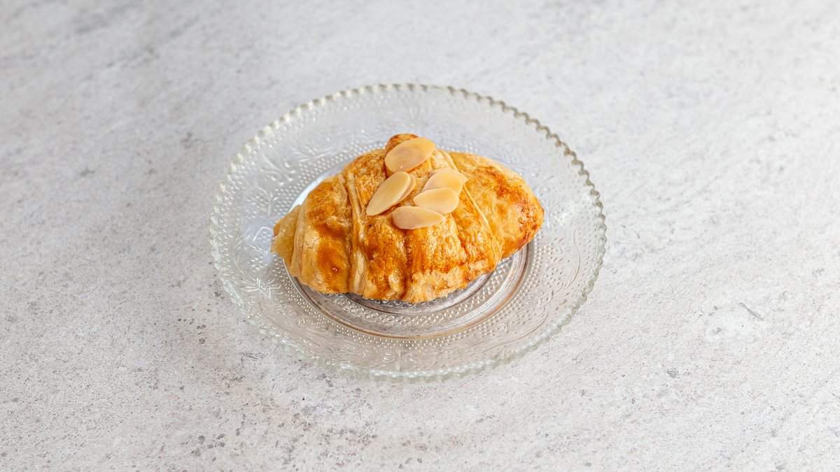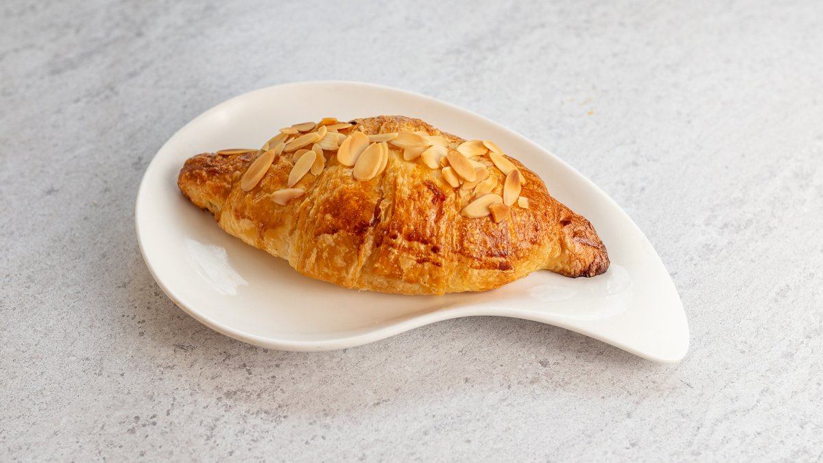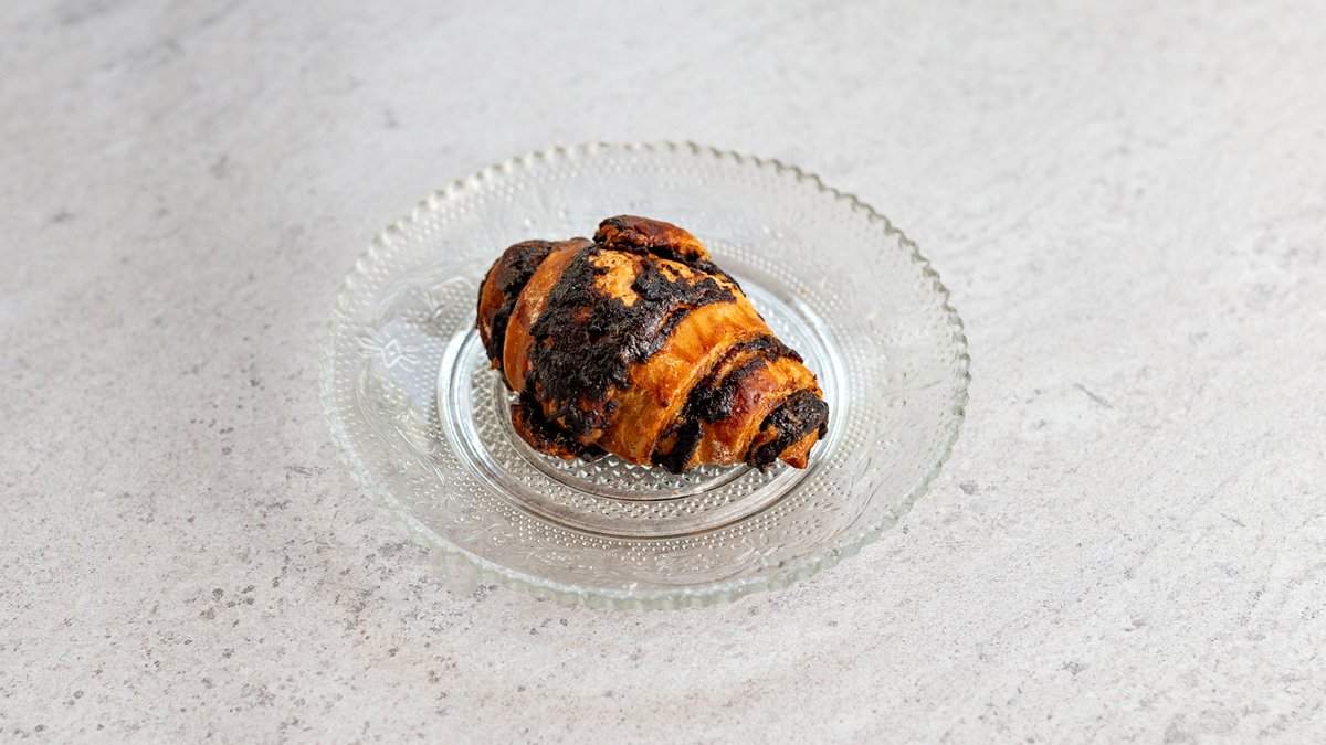 קרואסון חמאה במילוי סלמון מעושן, שמנת שום שמיר, ביצת עין ובצל ירוק מוגש עם סלט ירוק