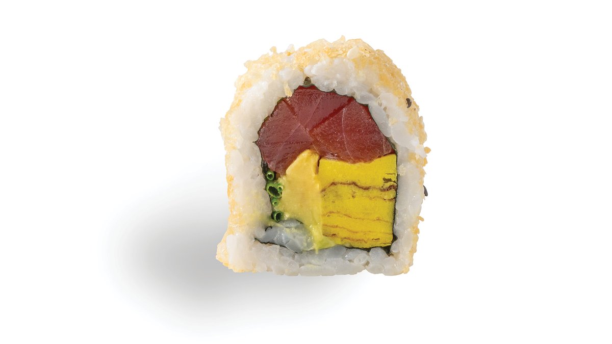 טמאגו, אבוקדו ובטטה, עטוף בשבבי פנקו ושומשום