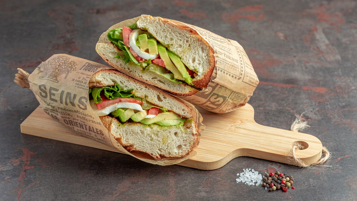 כריך ג'בטה עם חסה, עגבניה, אבוקדו וביצה קשה
