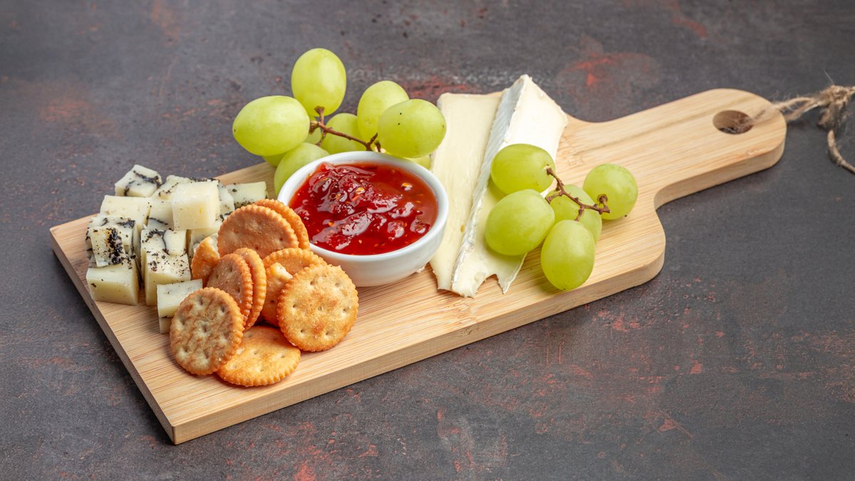 150 גר' גבינות קשות חתוכות, ריבת שרי בייתית וקרקרים