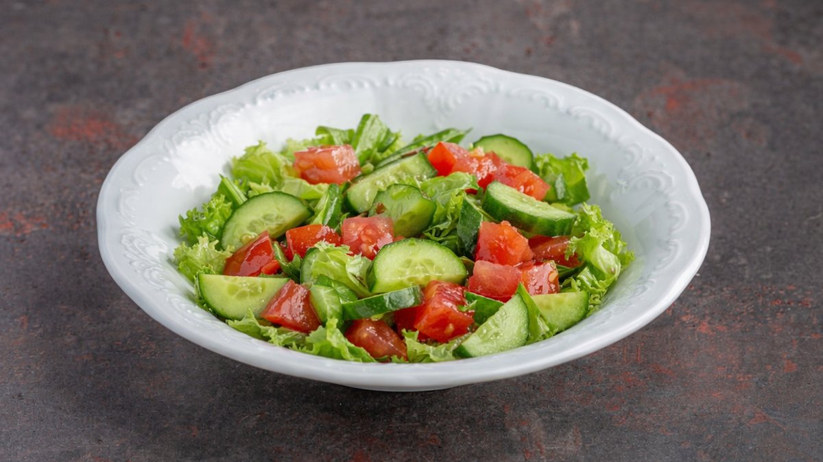 סלט ירקות אישי. חסה, מלפפון, עגבניה