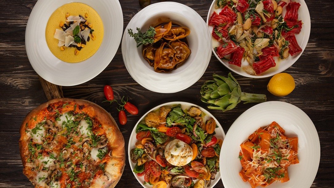 טורטליני במילוי לבאנה וזעתר, שמן זית, שום קונפי, עגבניות שרי מיובשות, זעתר טרי