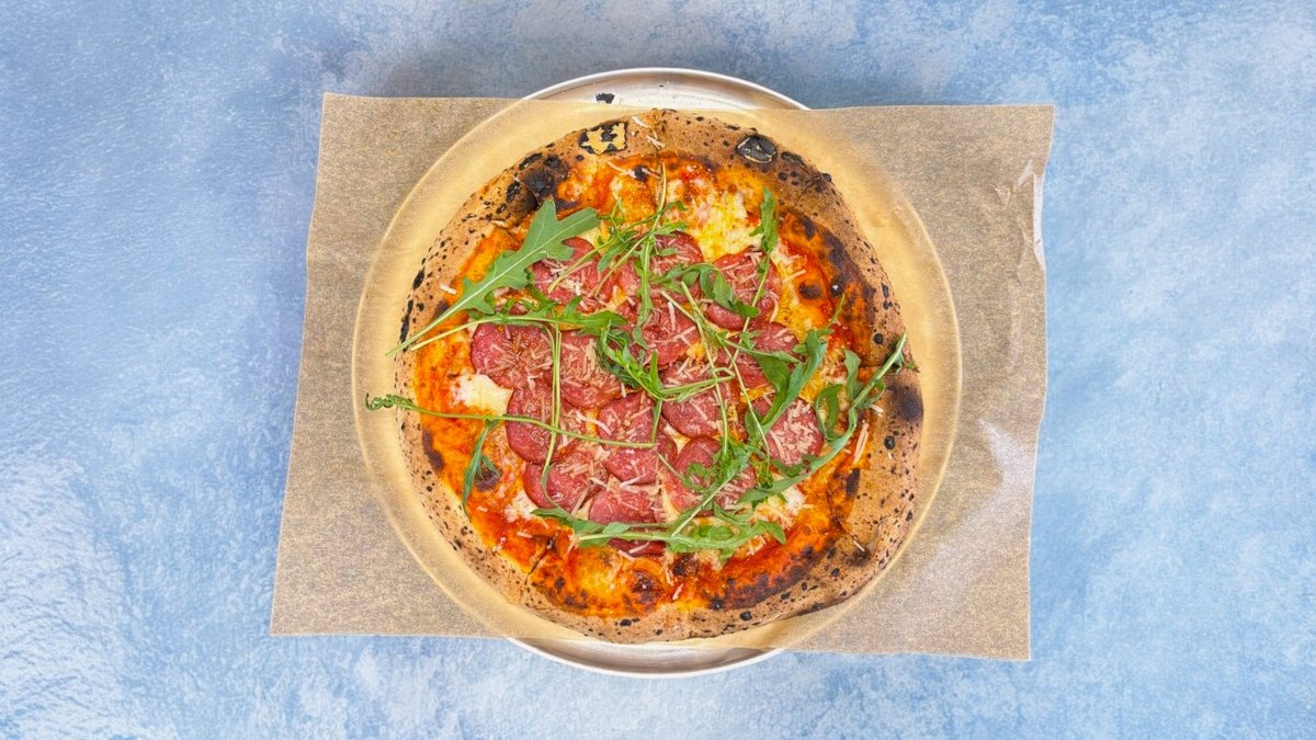רוטב עגבניות, מוצרלה פרסקה, פפרוני עגל, דבש שאטה ורוקט