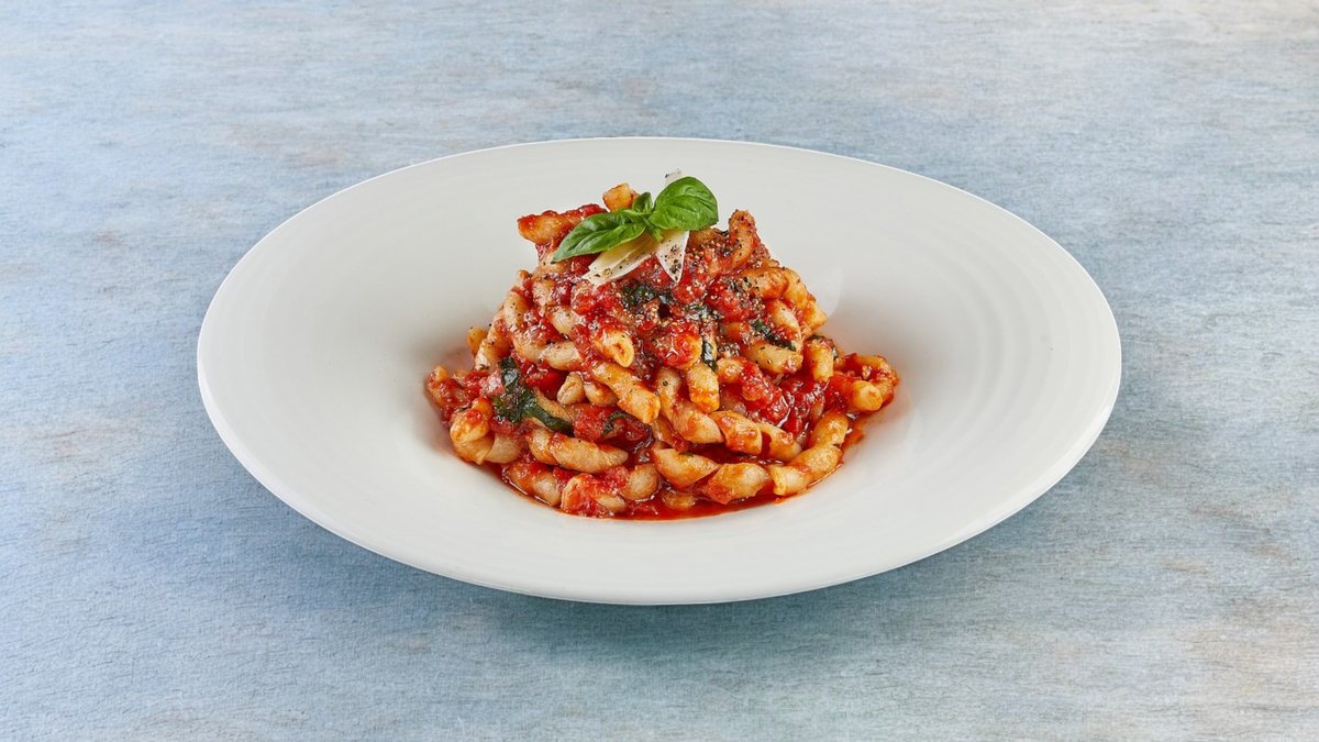 פסטה לבחירה ברוטב עגבניות חריף, שום קונפי ובזיליקום מוגש עם פרמז'ן בצד