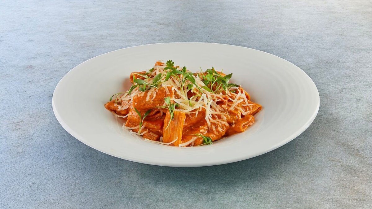 פסטה לבחירה ברוטב רוזה מוגש עם פרמז׳ן בצד