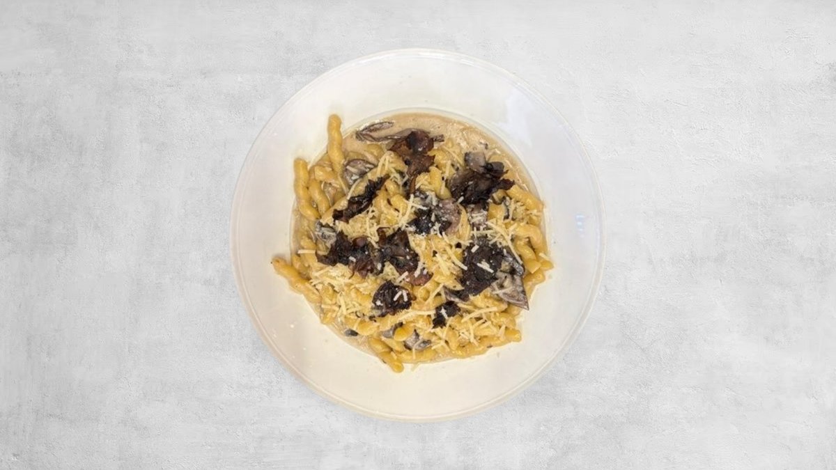בוסיאטה טרייה, שמנת, כמהין, פורטבלו ופרמג'אנו רג'אנו מוגש עם פרמז׳ן בצד