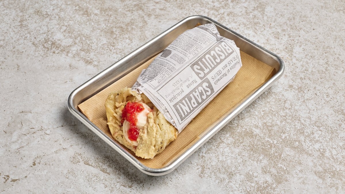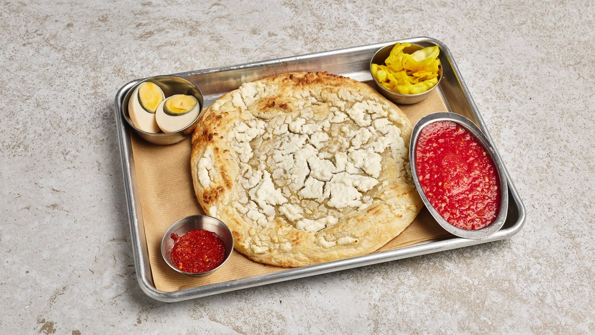 מוגש עם רסק עגבניות, חריף ביצה קשה וחמוצים