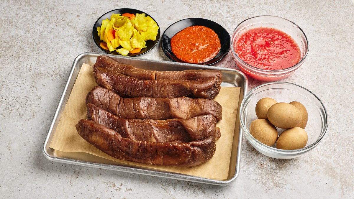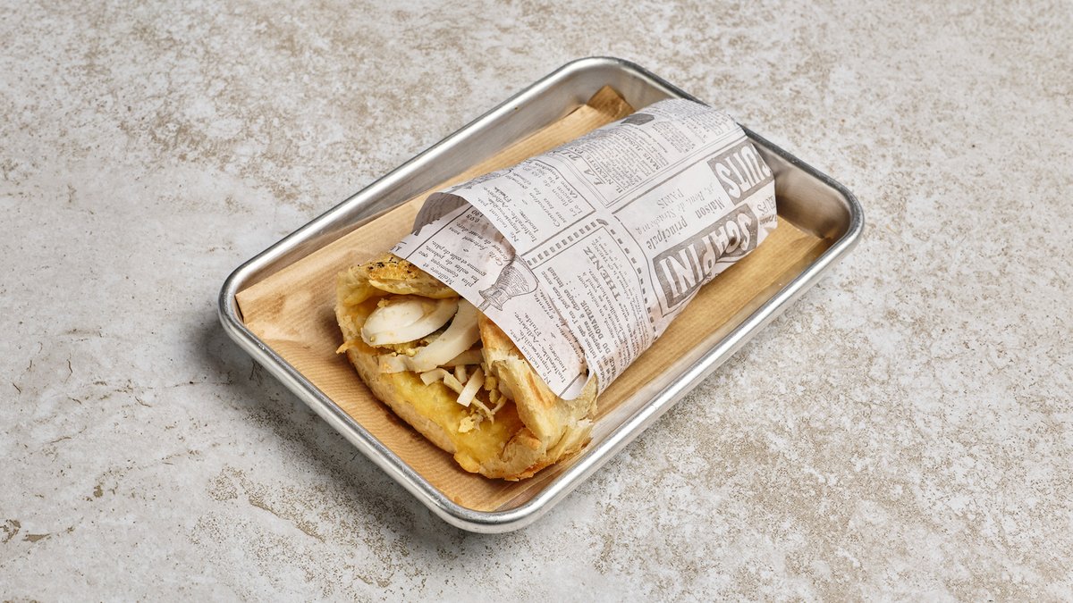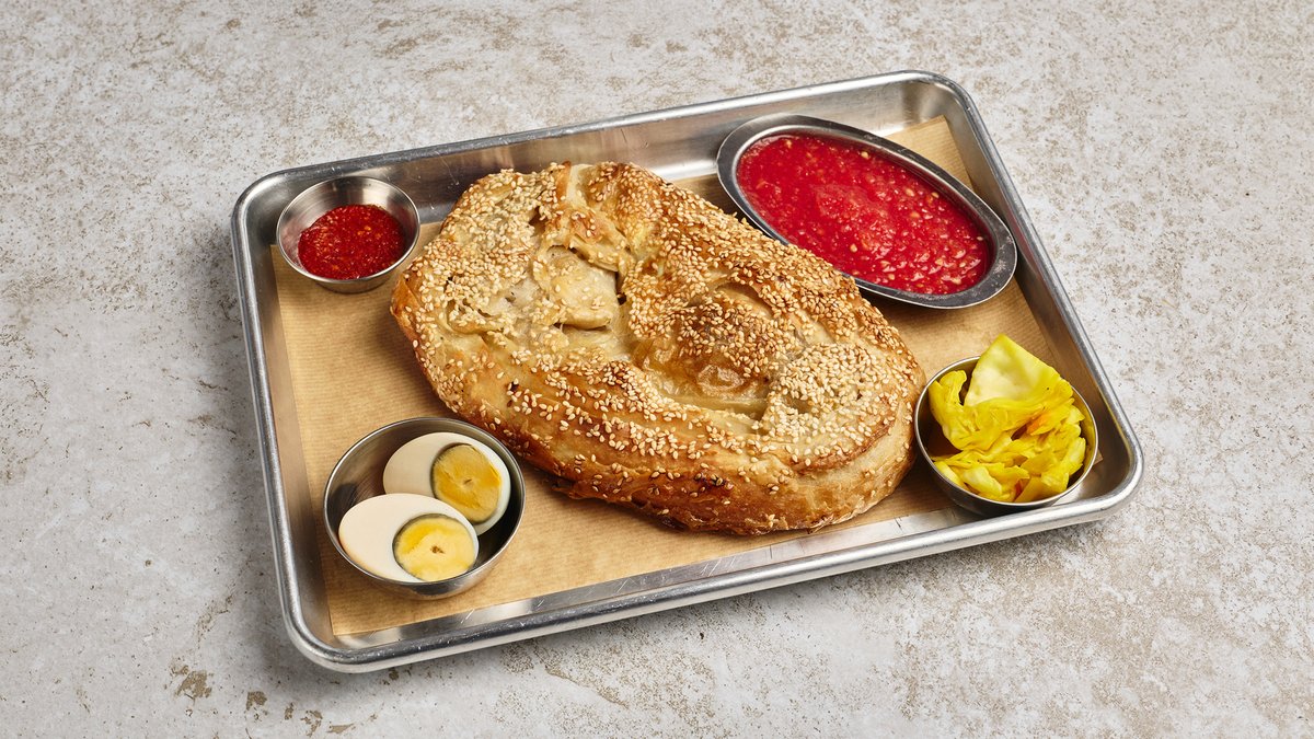 מוגש עם לחם, חמוצים ו-2 ביצים
