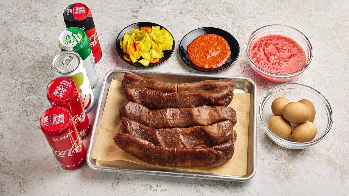 5 יח׳ ג׳חנון. כל ג׳חנון מוגש עם רסק, חריף, חמוצים וביצה קשה. 5 פחיות שתייה לבחירה