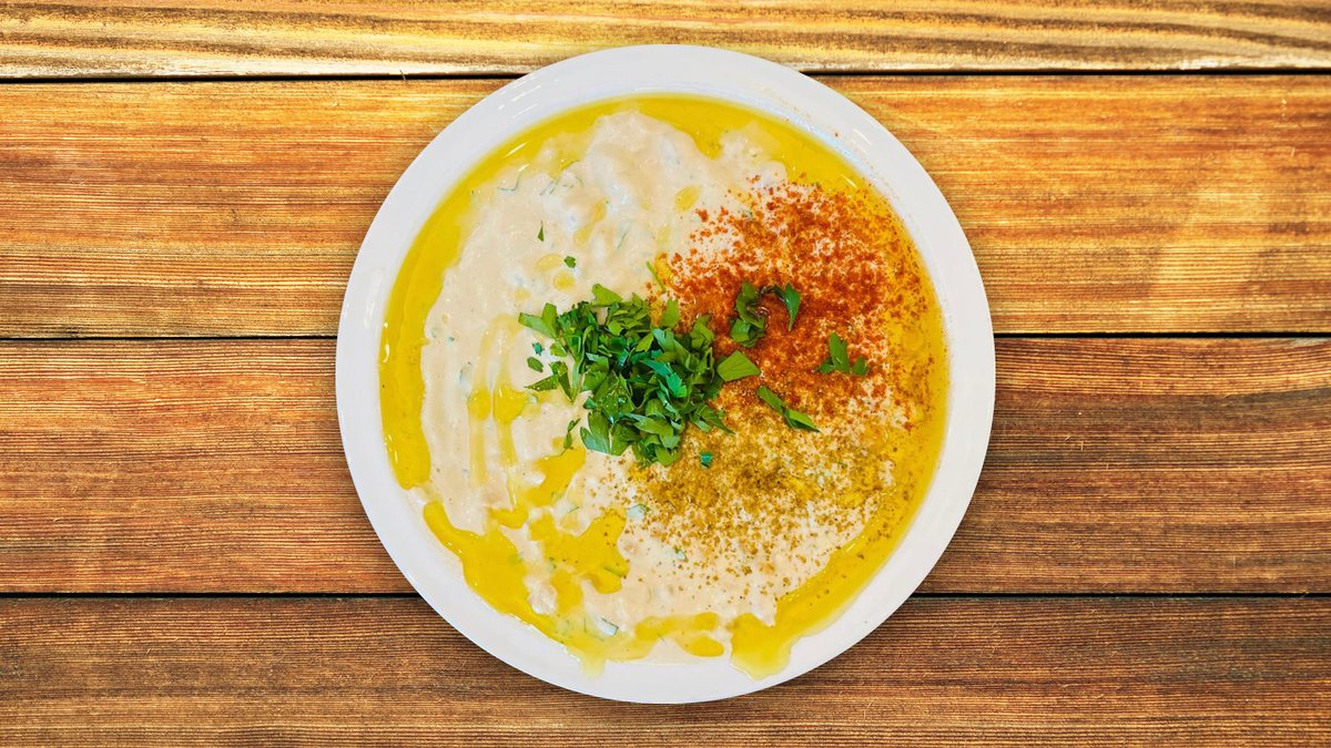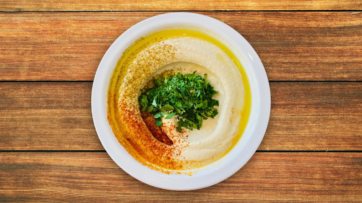 חומוס עם טחינה, פטרוזיליה, שמן זית ותבלינים