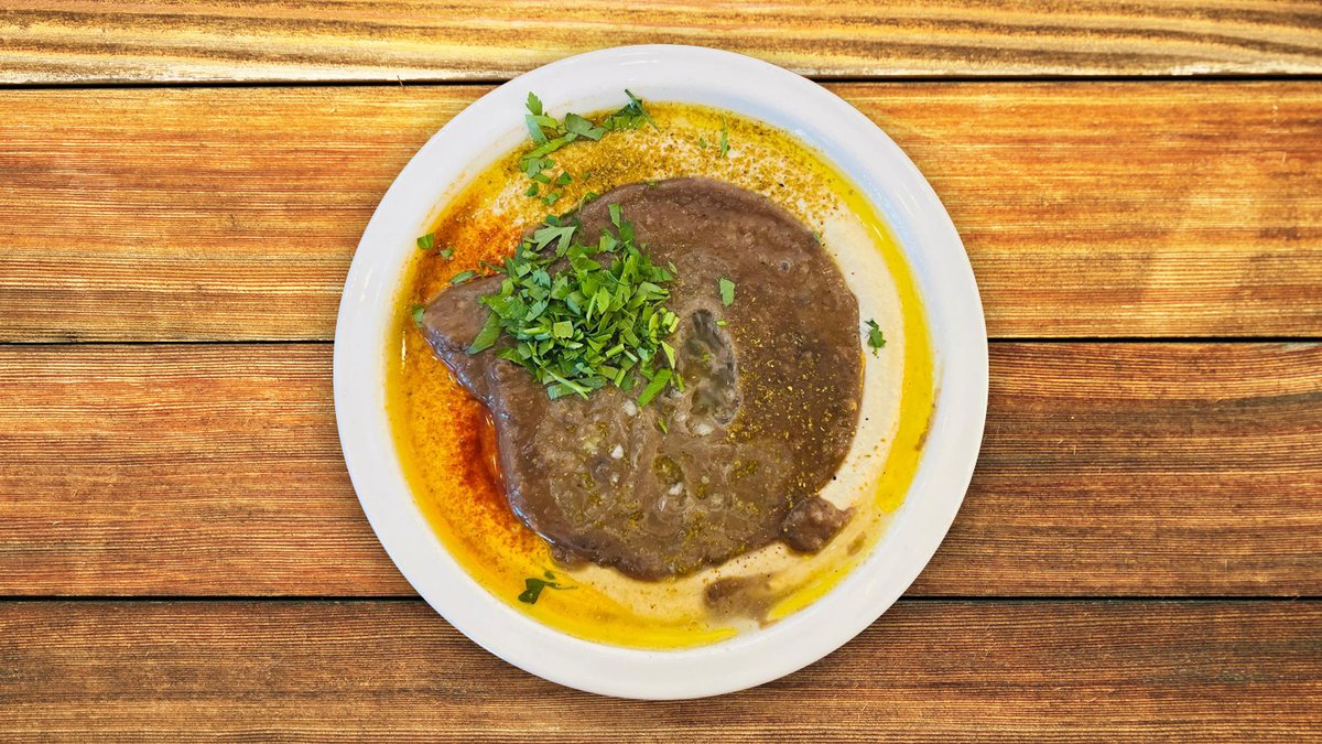 חומוס עם גרגרים חמים, פול, טחינה, פטרוזיליה, שמן זית ותבלינים