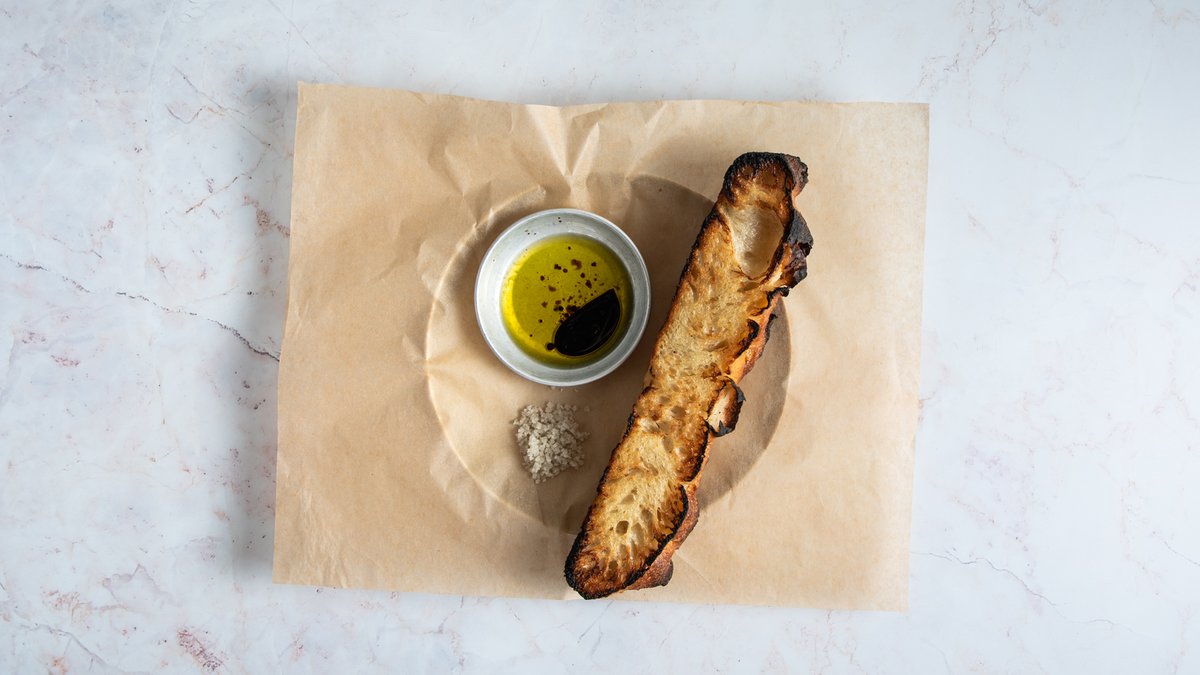 בצק מחמצת. עם שמן זית וחומץ בלסמי