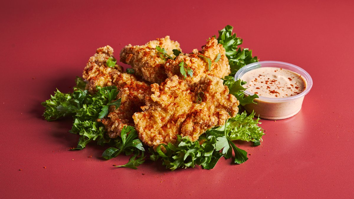 4 יח׳ צ׳יקן בייטס חסה, פטרוזיליה, קורנישונים מומלץ עם רוטב איולי טרטר
