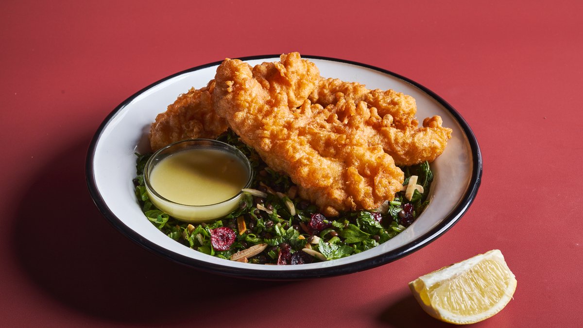 קראנצ'י צ'יקן מטוגן, חסה לאליק, קיסר, פרמז'ן, בצל מוחמץ