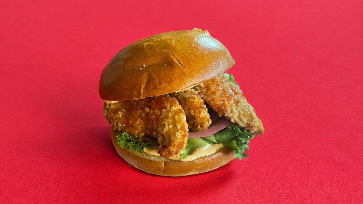 נתח קט פיש עסיסי בציפוי קריספי של ג׳וזף בלחמנייה רכה עם רוטב איולי טרטר, חסה, בצל מוחמץ ורוטב בצד לבחירה