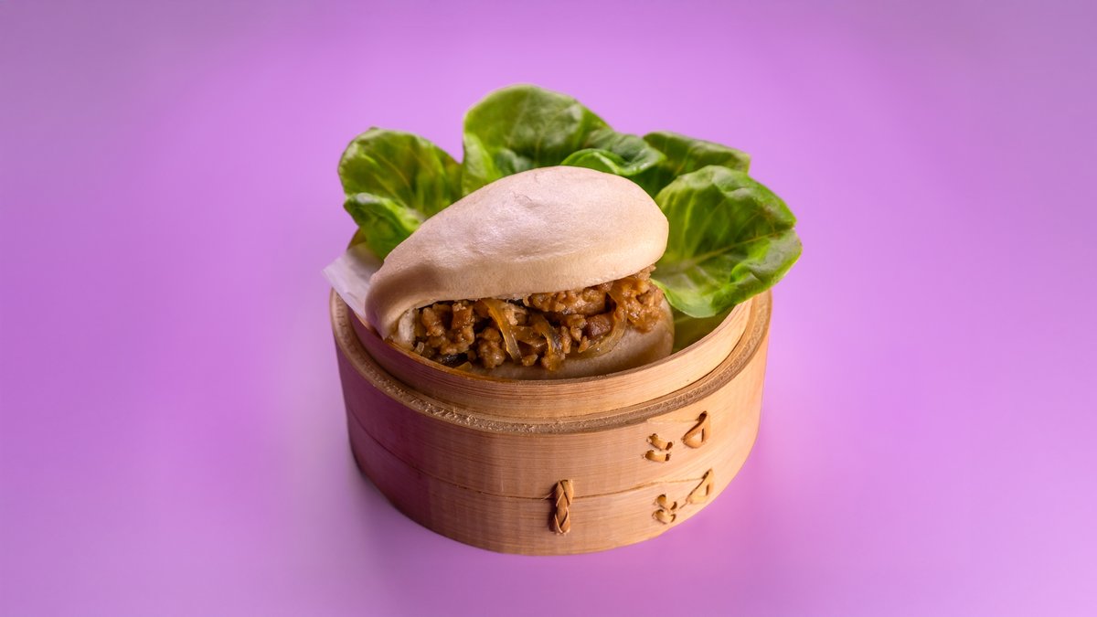 לחמניה מאודה במילוי עוף, במבו שוט, חסה ופטריות שיטאקי