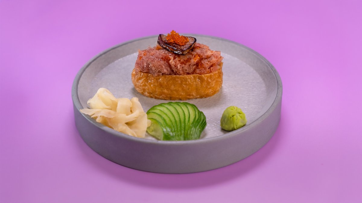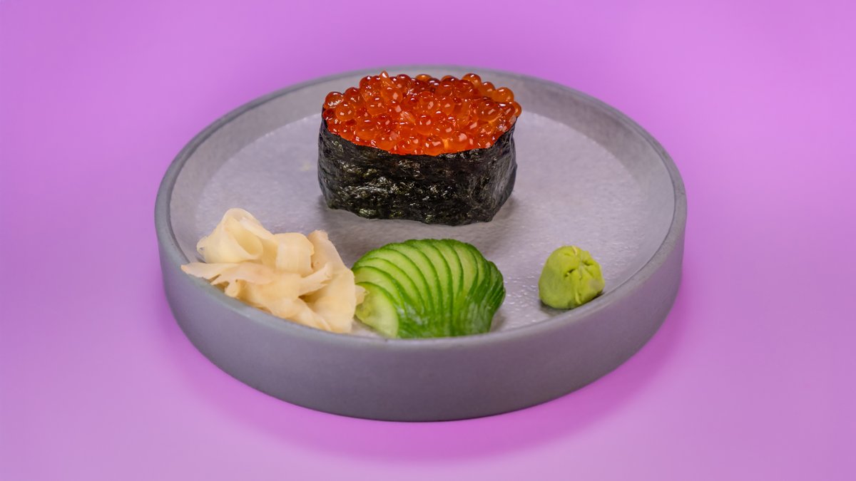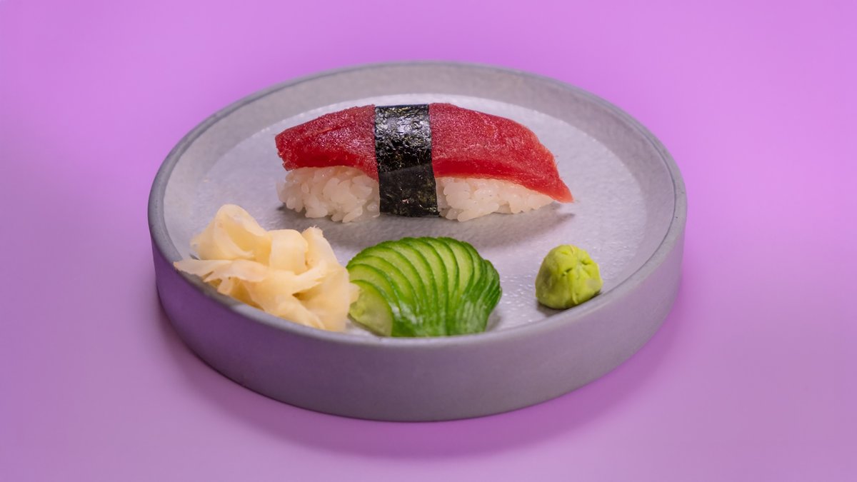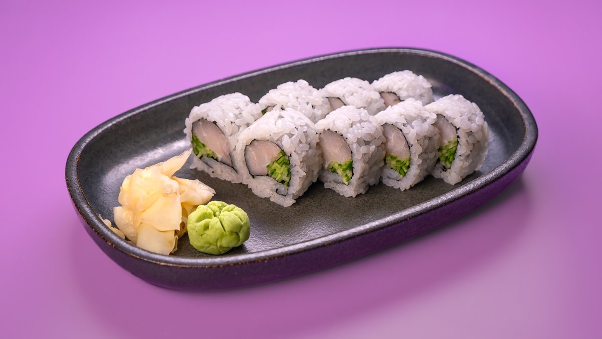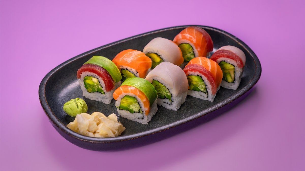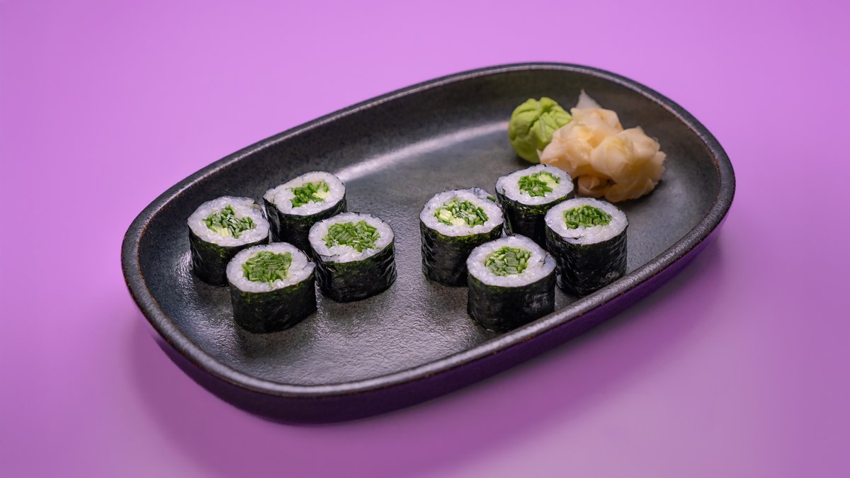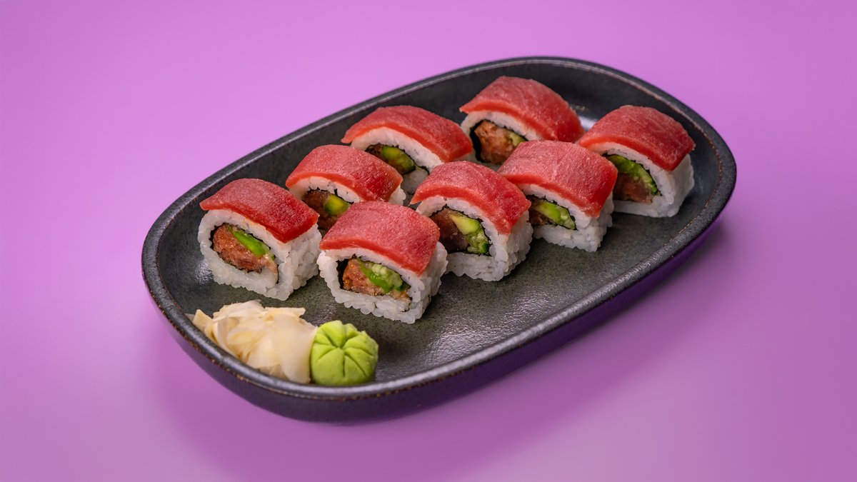 פרוסות של טונה, גומא, אצות נורי, צנונית, מלפפון ברוטב סומיסו ומוגש לצד רוטב מורומיג‘וי