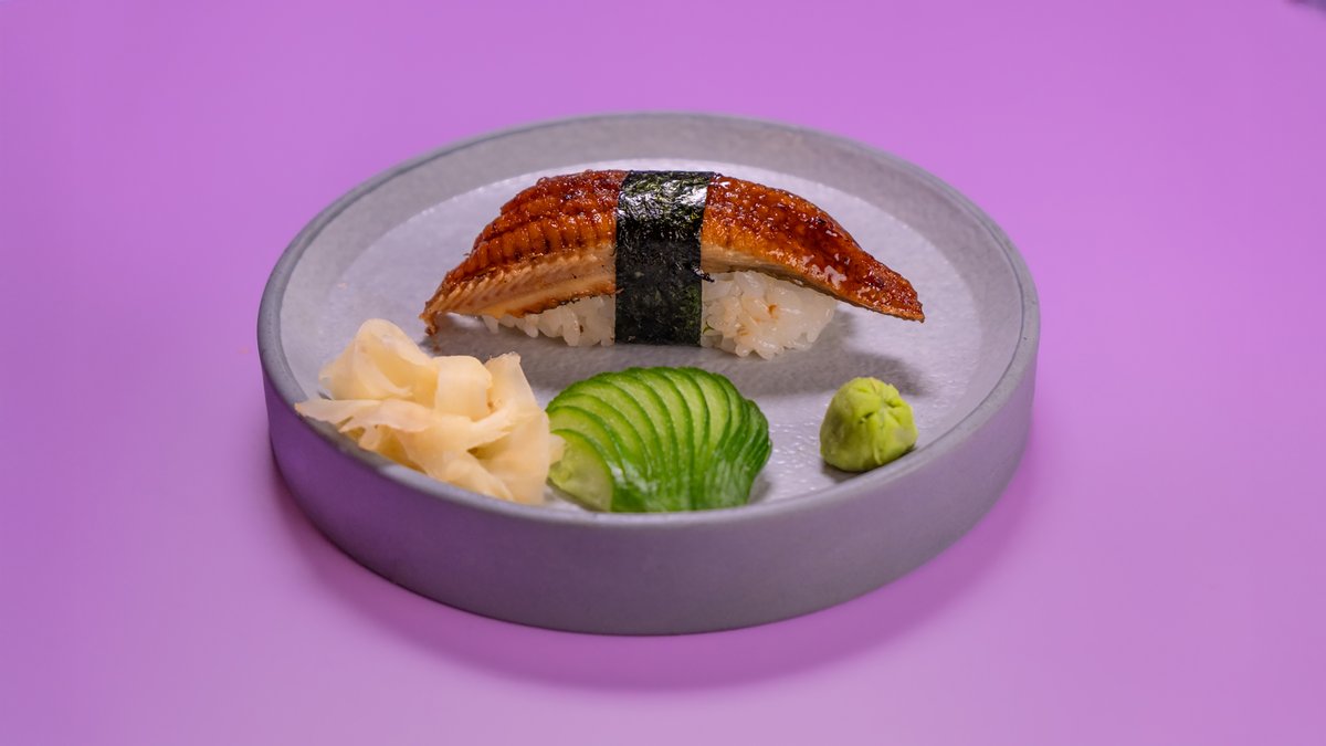 אורז, שרימפס טמפורה, סלמון, טונה, דג לבן, אבוקדו, אונאגי, טוביקו, איקורה, טמגו, וירקות טריים האונגי עשוי להכיל עצמות קטנות