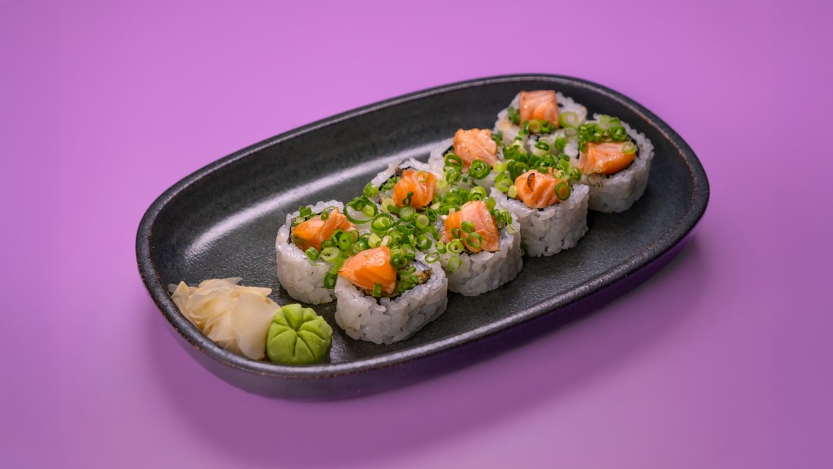 8 יח' של סלמון, סלמון סקין, מלפפון, אספרגוס, בצל ירוק ויוזו