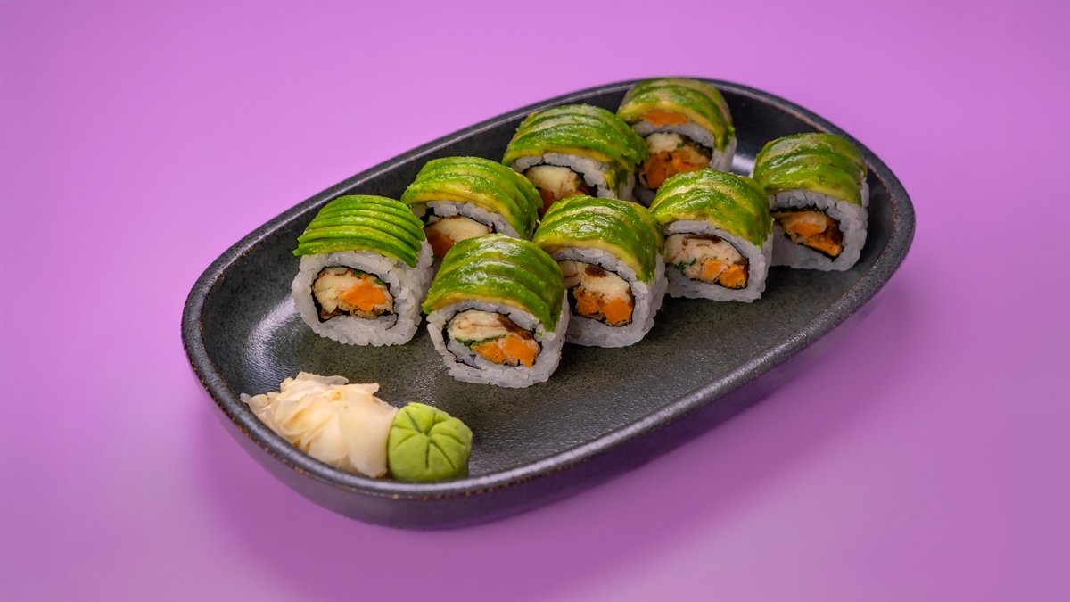 8 יח' של בטטה בטמפורה, מלפפון, טמאגו, קמפיו, עטוף באבוקדו