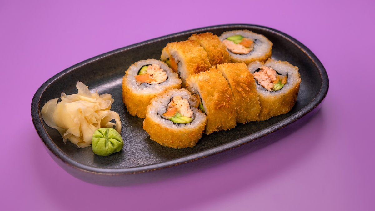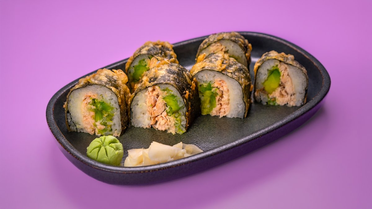 סלמון, אבוקדו, ומוצרלה מטוגן בטמפורה