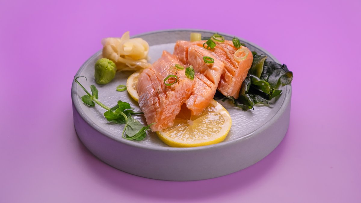 3 יח' של החלק השומני של הסלמון צרוב מעט