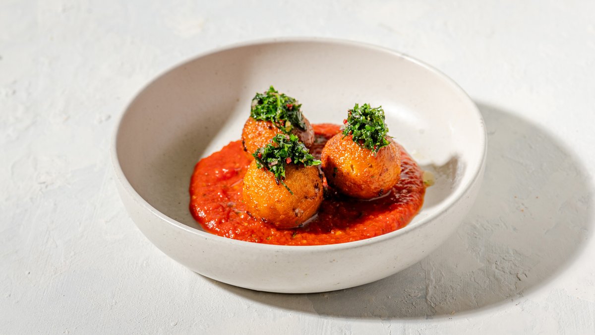 כדורי ריזוטו וגבינות על רוטב עגבניות חם וסלסה ורדה
