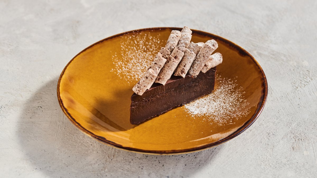 עוגת שוקולד עשירה ונימוחה ללא קמח, בציפוי שוקולד קרמי ושברי מרנג קקאו פריכים