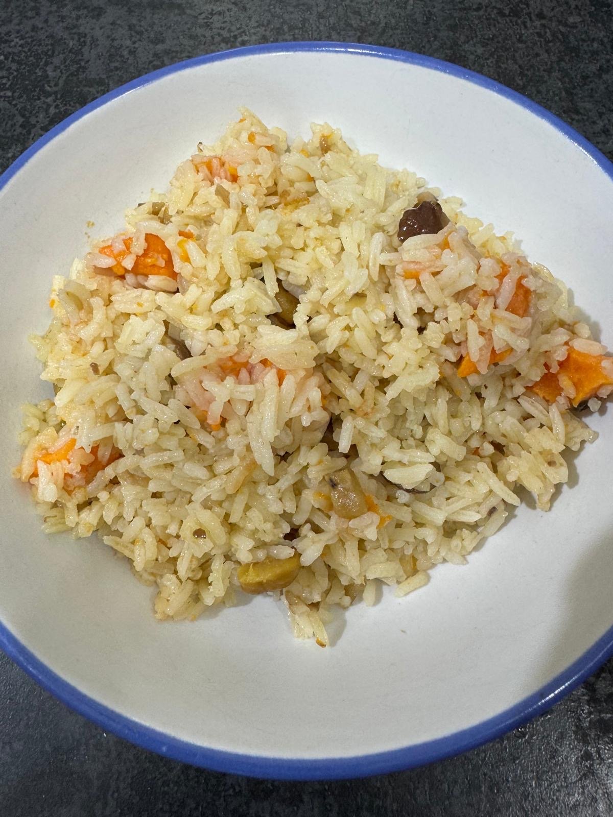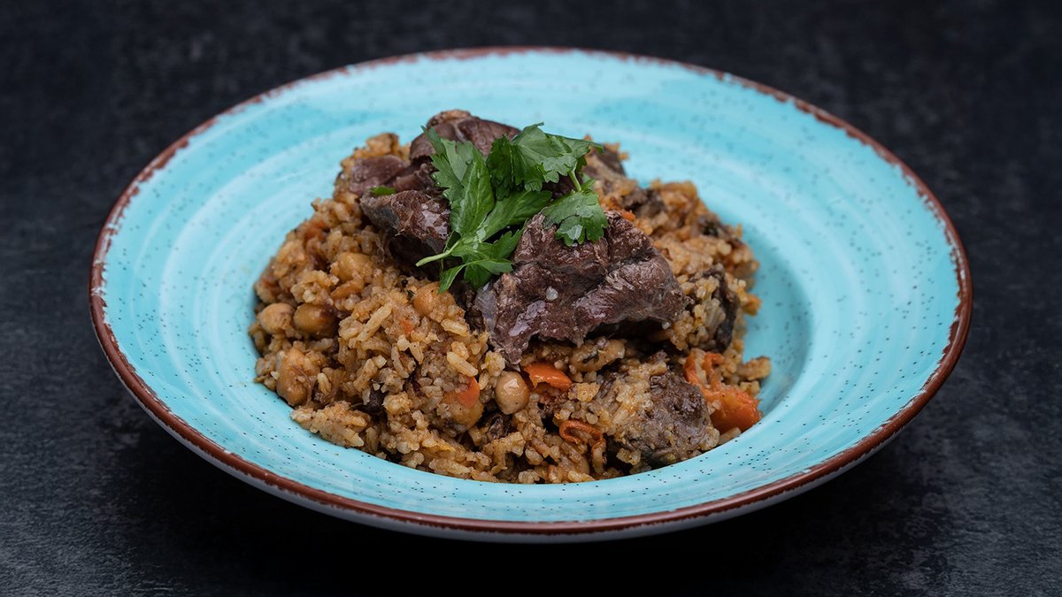 תבשיל אורז עם בשר, חומוס, גזר ועשבי תיבול מתקתק