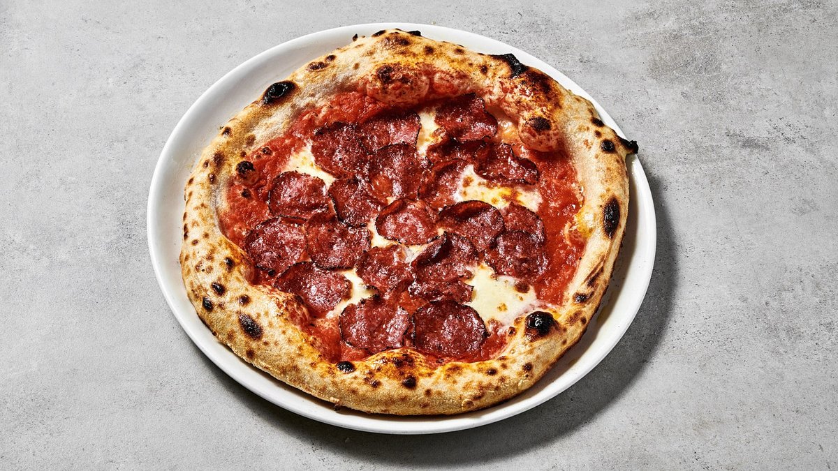 רוטב עגבניות, מוצרלה, צ'ילי ירוק טרי, פפרוני עגל מצופה פלפל שחור. *מגיעה חריפה