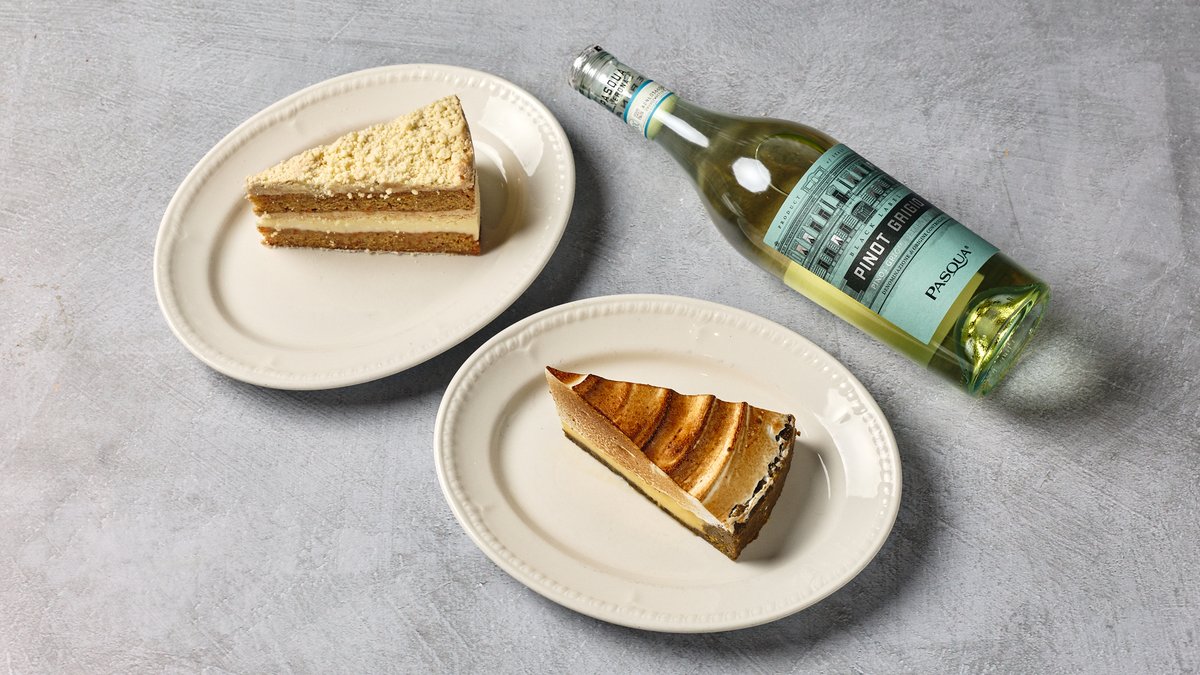 בקבוק יין מתוך תפריט היינות + 2 פרוסות עוגה לבחירה