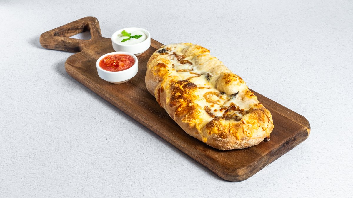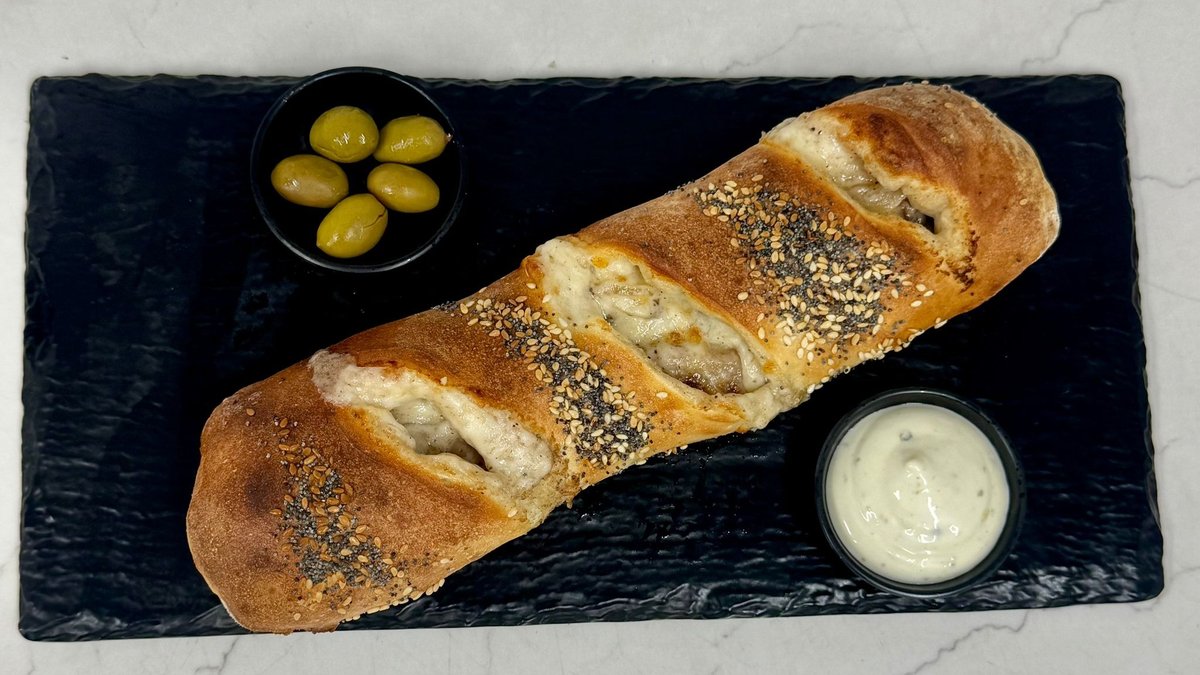 מאפה ממולא ברוטב שמנת פטריות , גבינת פטריות ובצל מקורמל,מוגש בליווי רוטב איולי וזיתים