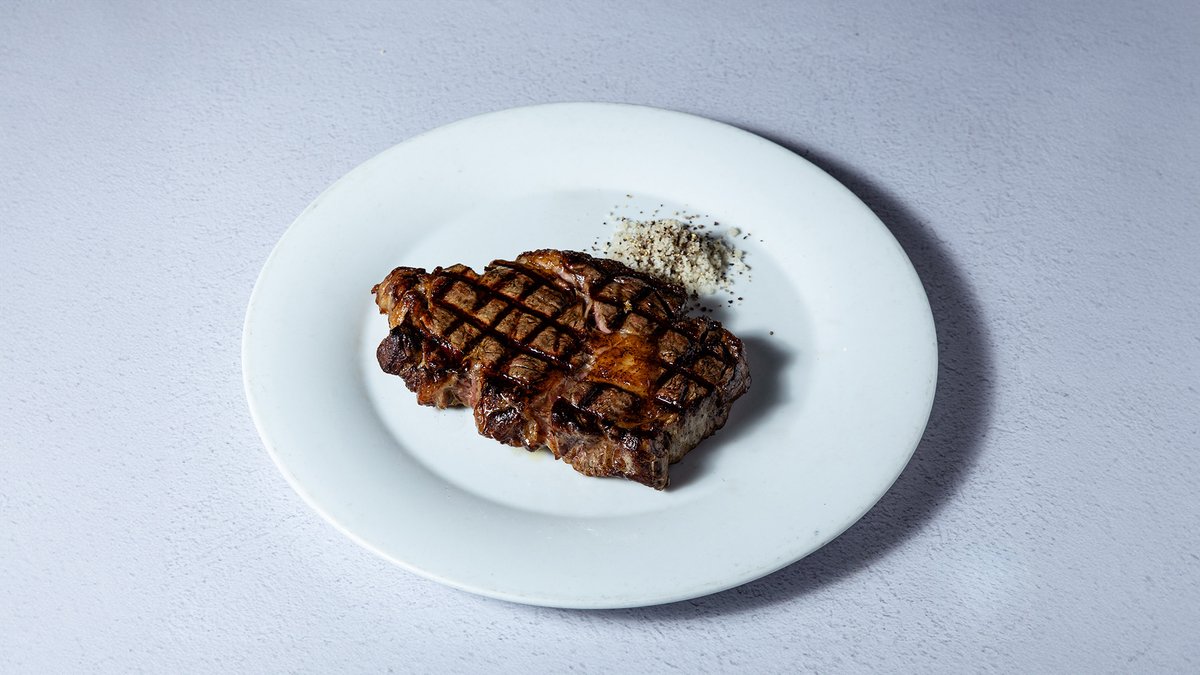 נתח אנטריקוט אנגוס מיושן 21 יום מתובל במלח אטלנטי ופלפל שחור גרוס, צ'ימיצ'ורי וקונפי שום