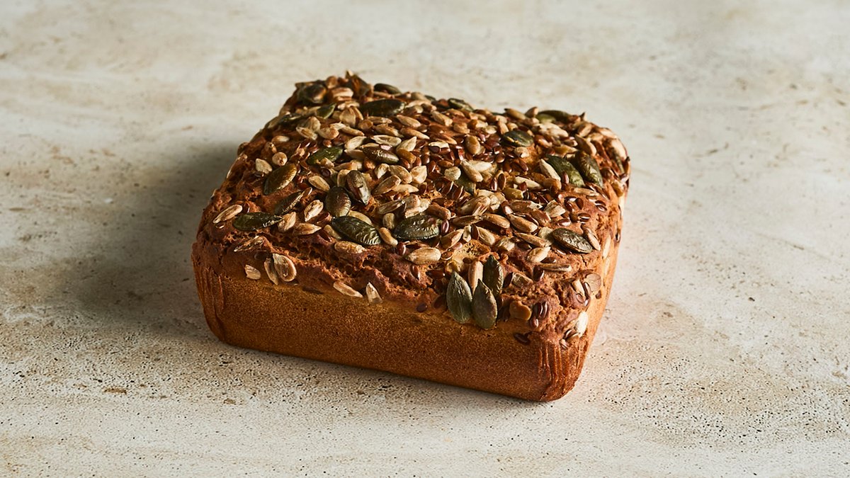 לחם עשוי קמח טף, קמח אורז מלא גרעינים וזרעונים (250 גרם)