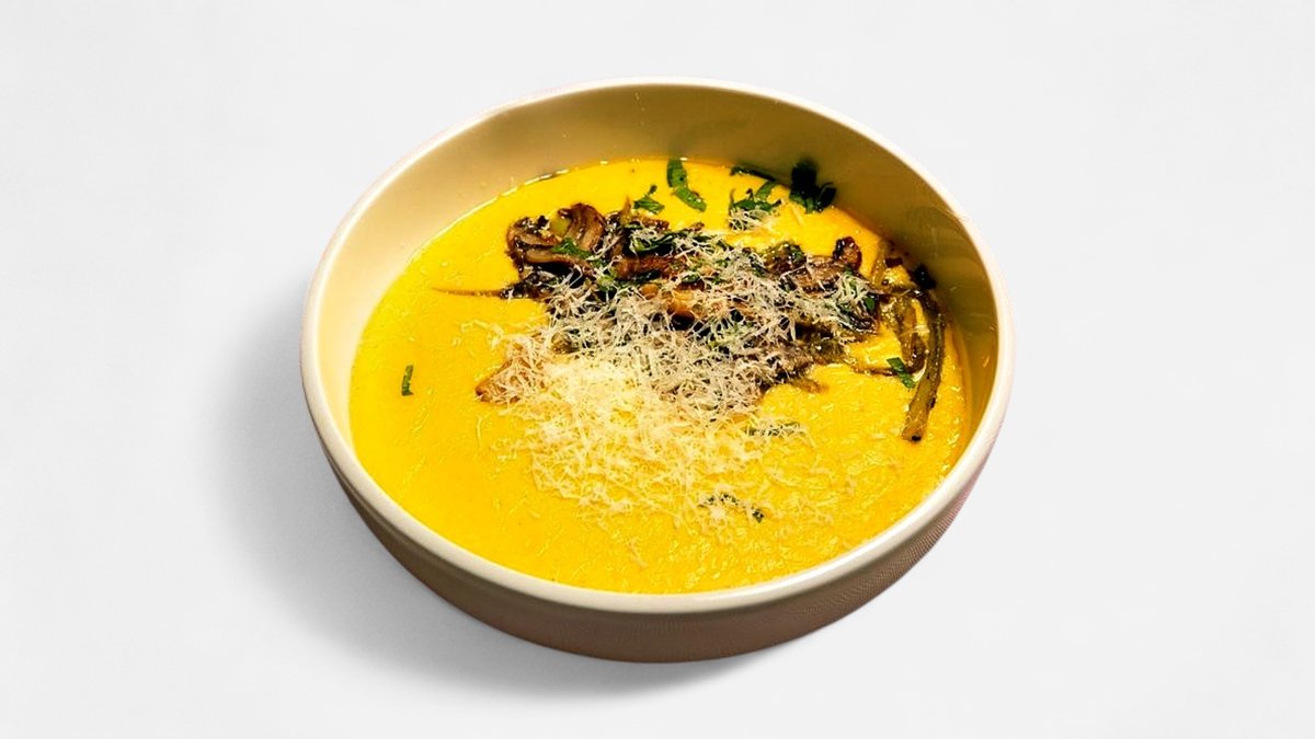 פולנטה תירס, אספרגוס, פטריות, גרידת לימון ופרמז'ן