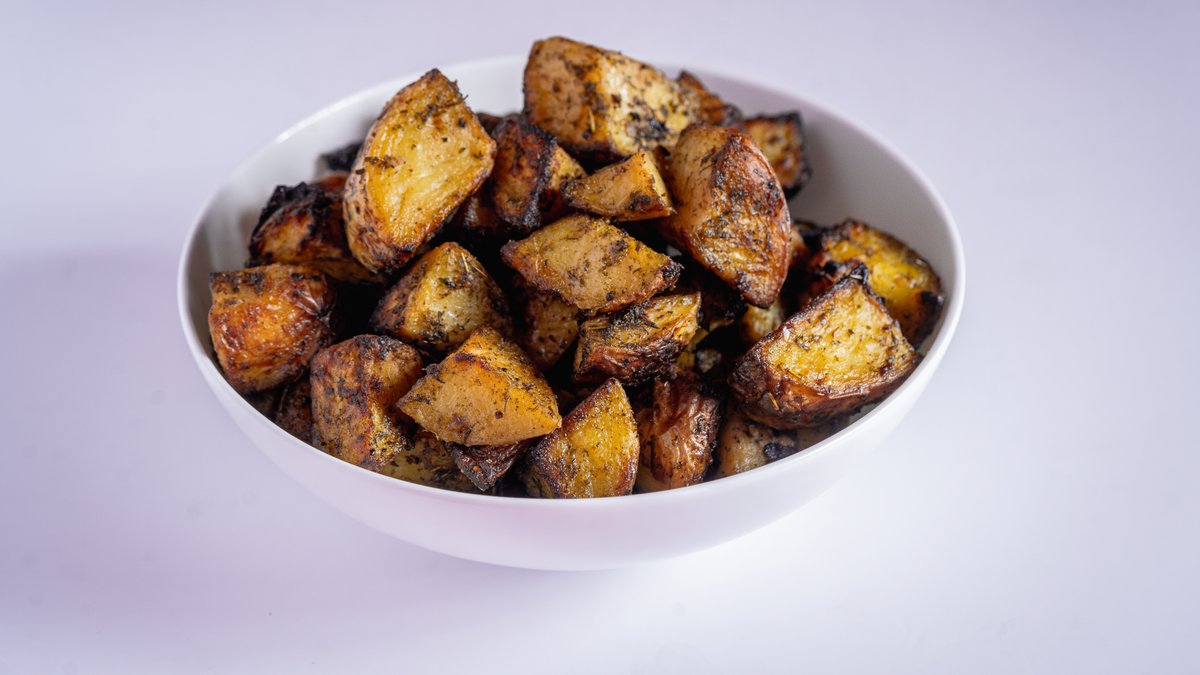 תפוחי אדמה באטר צלויים בשמן זית, שום כתוש ותערובת עשבי תיבול של אהרוני (טימין, רוזמרין, מרווה, פטרוזיליה, שום, בצל, לימון פרסי טחון, מלח, פלפל)