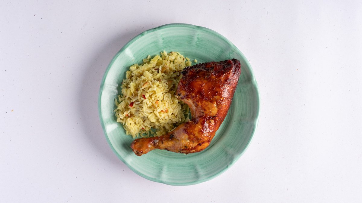 2 כרעיים עוף אסיאתי או בעשבי תיבול. מוגש עם תוספת לבחירה