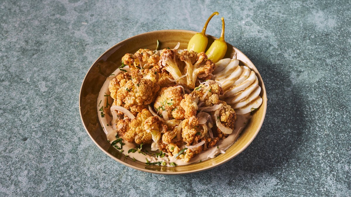על טחינה, ביצה קשה, שיפקה, פטרוזיליה ובצל מוחמץ בסומק ועוד טחינה גולמית