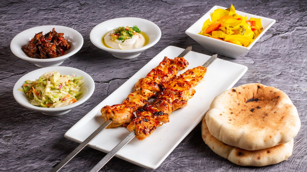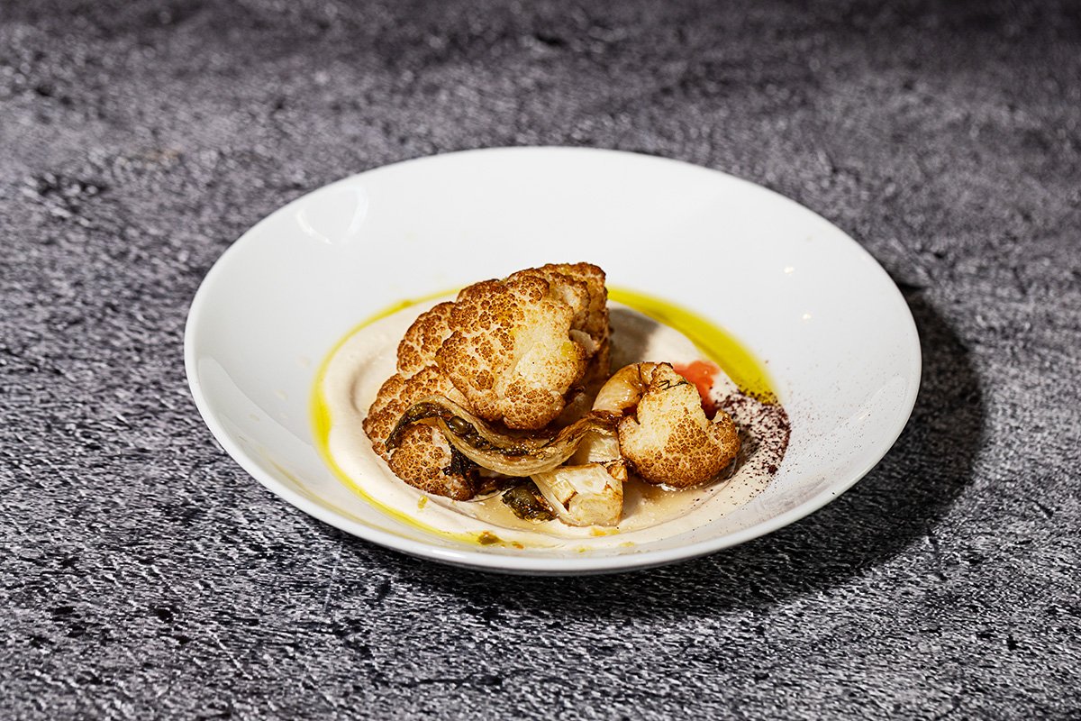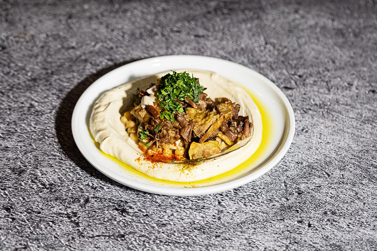 גרגרי חומוס מבושלים בטחינה חמה, המנה מגיעה עם 2 פיתות