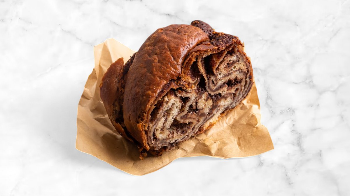 בחלת בריוש על בסיס שמן זית, גאודה, עגבניה, פסטו וחמאה. מוגש עם זיתים בצד.